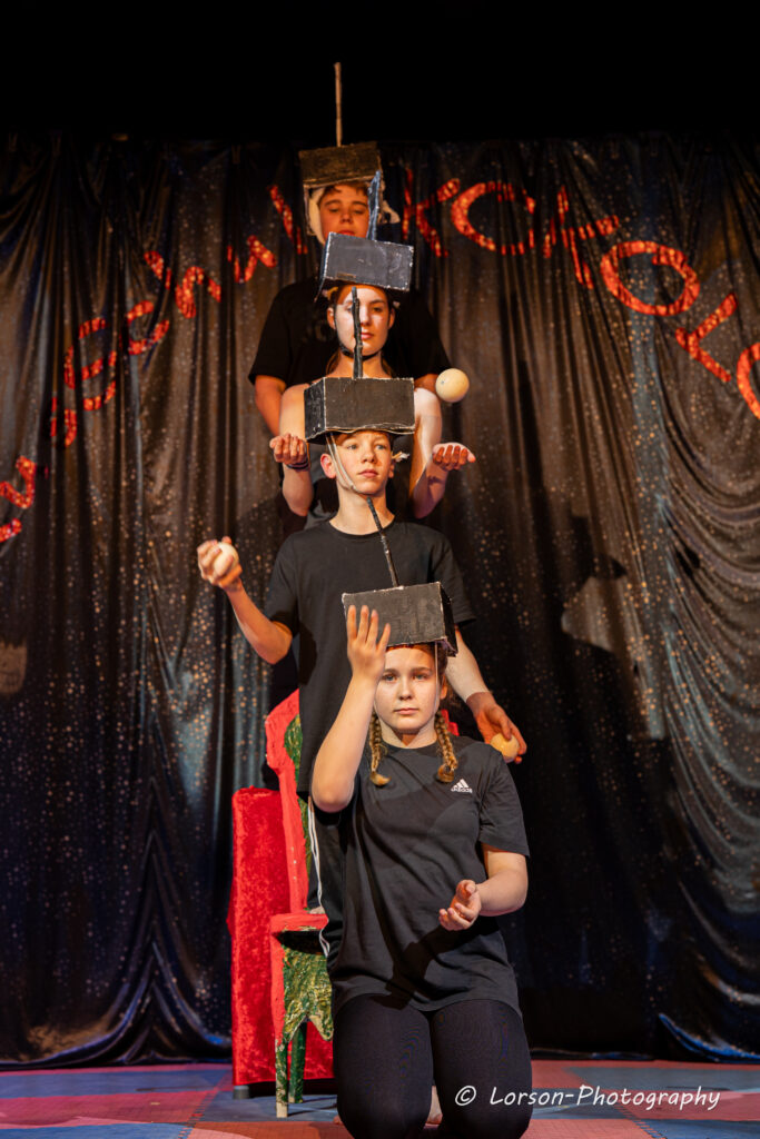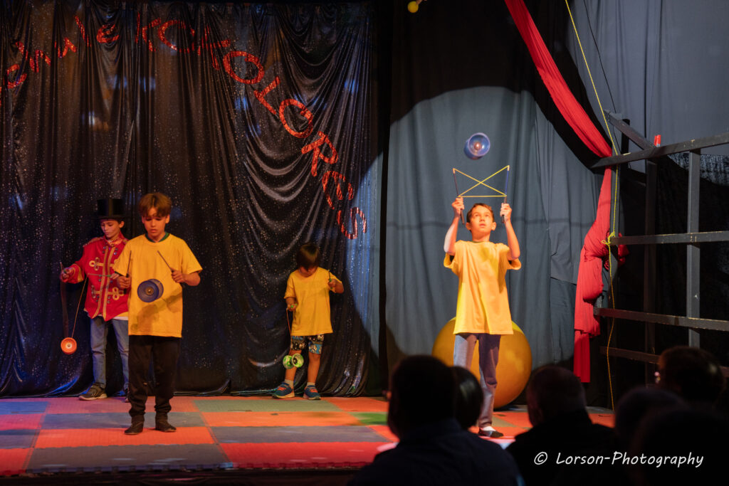 Regelmäßig ein Mal im Jahr eine Woche vor oder nach den Schulosterferien präsentieren die Kinder und Jugendlichen unserer mehrwöchigen Kurse zwei ABSCHLUSSVORSTELLUNGEN ihrer Kurse auf unserer Bühne. Diese Vorstellungen haben immer eine Gesamthandlung/ein Gesamtthema, in dessen Rahmen die Kursgruppen dann rund um ihre erlernte Zirkuskünste einfallsreiche und abwechslungsreiche Kursgeschichten entwickeln. Mit Musik, Licht und Kostümen werden diese Spielszenen auf der Bühne spannend und atemberaubend vor großem Publikum gemeinsam mit allen Kursgruppen präsentiert. Und alle werden mit begeistertem, tobenden, ja sogar hysterischem Applaus des Publikums belohnt.