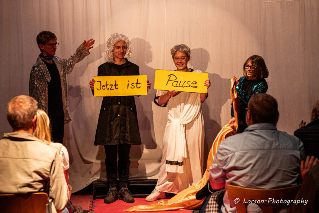 Unsere Jugend-Präsentationsgruppe gestaltete eine Adventsfeier mit einem besonderen Zirkus Theater Bühnenprojekt. Sie präsentierten für Eltern, Freunde und Verwandte ihr tolles Bühnenprogramm <DIE PRÄSIS HEBEN AB….UNTERWEGS IN GALLAKTISCHE WEITEN>, dass sie bereits bei den Abschlussvorstellungen unserer mehrwöchigen Kinder- und Jugendkurse im Mai des Jahres auf unsere Bühne gebracht hatten. Anschließend, nach dem tosenden und begeisterten Applaus der Zuschauer*innen, gab es gemütliches Geplauder bei heißem Punsch und von den Eltern mitgebrachtem Weihnachtsgebäck, Kuchen und anderen Köstlichkeiten.